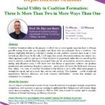 Nov 07 2025 Departmental Seminar – Social Utility in Coalition Formation: Three Is More Than Two in More Ways Than One Rm 1103, 11/F, The Jockey Club Tower, Centennial Campus, The University of Hong Kong