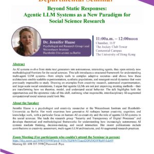 Departmental Seminar – Beyond Static Responses: Agentic LLM Systems as a New Paradigm for Social Science Research