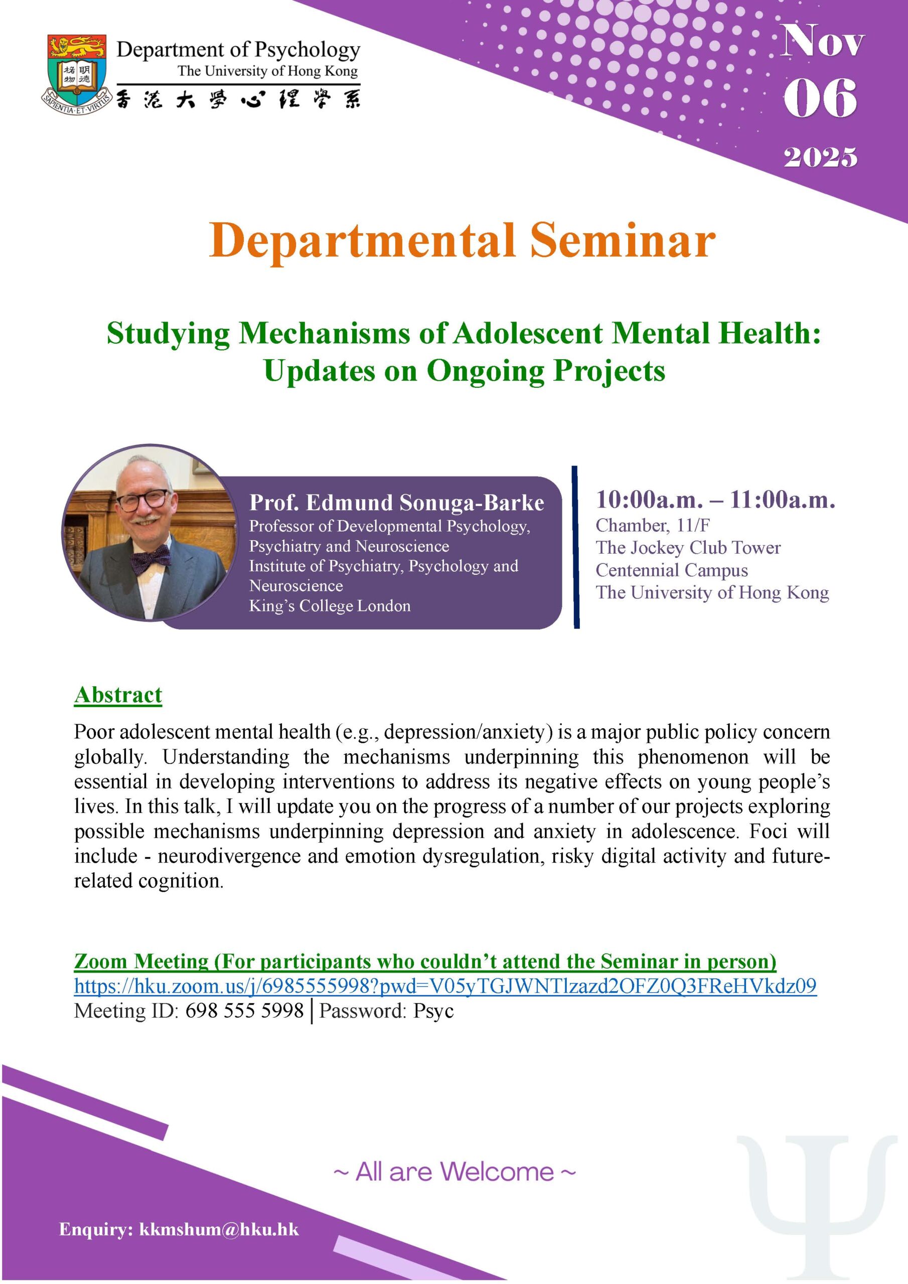 Departmental Seminar – Studying Mechanisms of Adolescent Mental Health: Updates on Ongoing Projects Details: 20251106-Edmund_Departmental Seminar Print